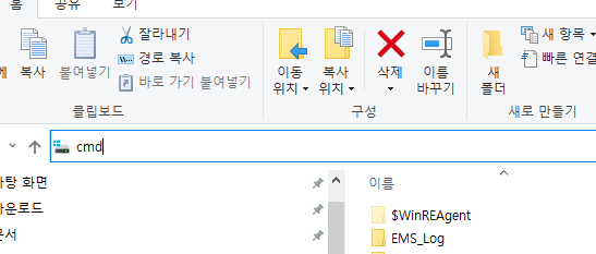 4. 탐색기 경로 창에 cmd 입력으로 바로 열기