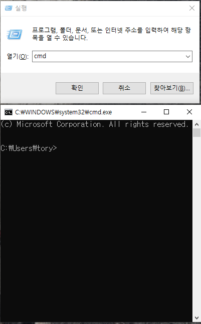 이전에는 보통 실행 창을 띄워 cmd 창을 열고