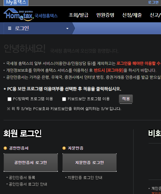 홈텍스에 로그인 하시고